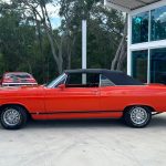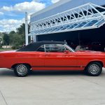 The vibrant orange exterior of this Fairlane GT Convertible is a true head-turner. The color choice not only adds a touch of nostalgia but also enhances the car's iconic appearance, reflecting the era's spirit and style. The glossy finish accentuates the classic lines and contours of the vehicle, epitomizing the allure of a bygone era.